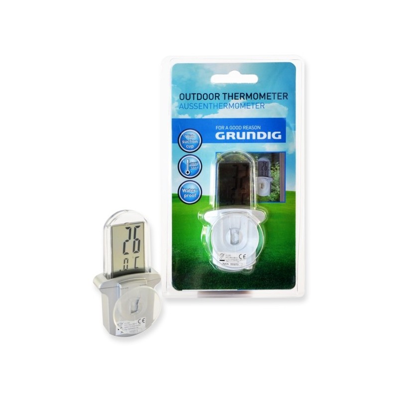 Termometro da esterno a ventosa Grazie alla ventosa Ë posizionabile su superfici lisce come il vetro,è impermeabile e resiste alle alte e alle basse temperature. Range di temperatura: -20°- +50°.Alimentata da 2 batteria a bottone. Dimensioni (LxHxP): 4,3 x 8,5 x 2 cm.
