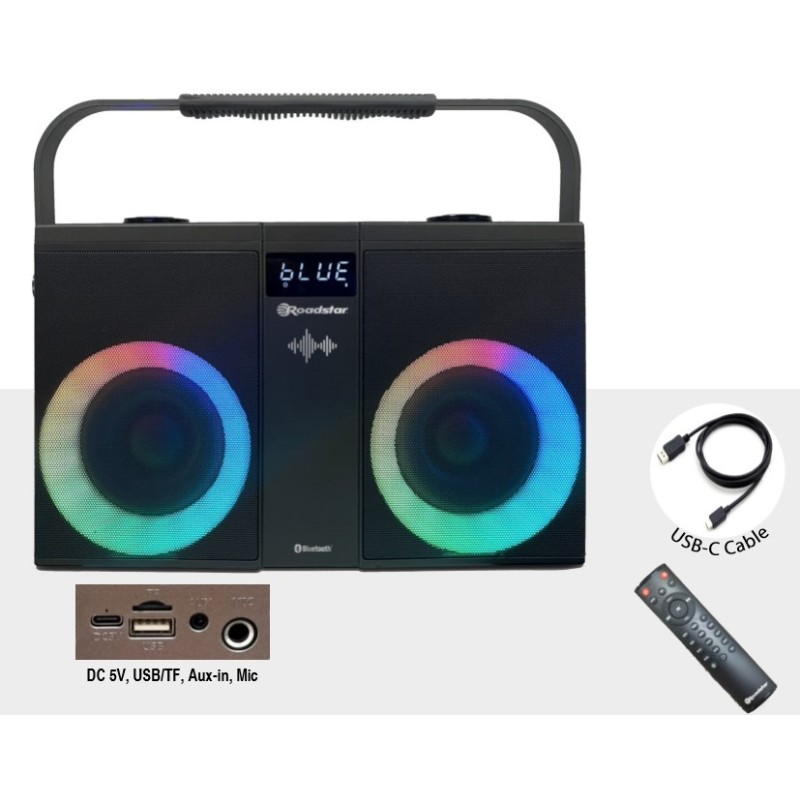 Speaker stereo portatile BT con ingresso MIC telecomando e illuminazione