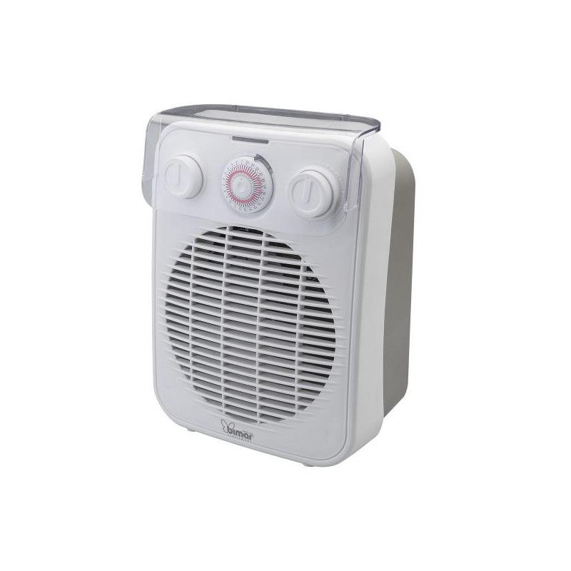 "Termoventilatore con programmatore, per scaldare gli ambienti domestici e il bagno. Termostato ambiente regolabile. Selettore: 0/ Ventilazione/ Eco (1000W)/ Rapid (1900W) Programmatore degli intervalli d'uso quotidiano. Segnalatore luminoso. Pannello comandi con coperchio trasparente di protezione. Corpo in plastica con maniglia integrata. Base con gommini d'appoggio. Grado di protezione IP21 (gocce d'acqua verticali). Idoneo per ambienti di 20m²circa. 220-240V~ 50/60Hz 1800-2000W. "
