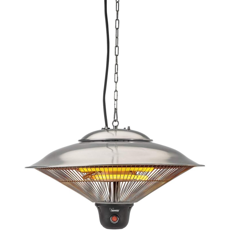"-Stufa radiante a soffitto per uso esterno e fuori dagli ambienti chiusi, idonea al riscaldamento istantaneo circoscritto. -Resistenze alogene 1000W e 500W. -Corpo in alluminio, griglia di protezione in acciaio. -Parabola riflettente in alluminio. -Interruttore 0/I. -Potenza regolabile: 0/500/1000/1500W -Luce LED. -Telecomando per selezionare potenza e illuminazione. -Sostegno con catenella in metallo. -Cordone di alimentazione. -Grado di protezione IP34 (corpi 2,5mm e spruzzi acqua). -220-2...