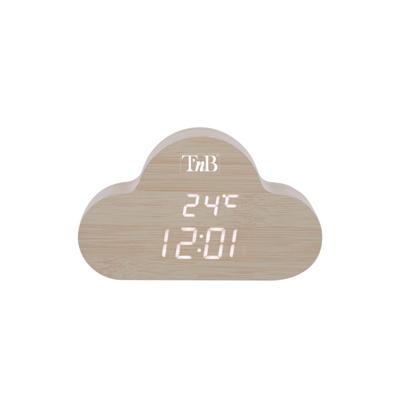 Sveglia digitale da tavolo, con elegante finitura esterna in simil legno chiaro.